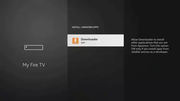 12. Cette action activera l'option « Sources inconnues » pour l'application Downloader. Cela permettra le chargement d'applications hors du réseau local sur votre appareil.